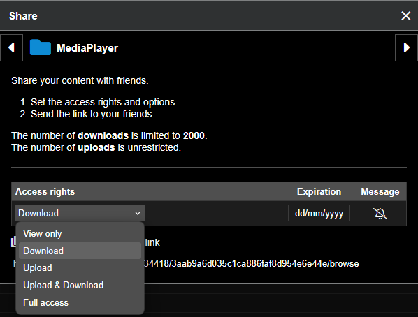 In this overview you can delete shared links, view the number of downloads and reset them to 0 if needed.
